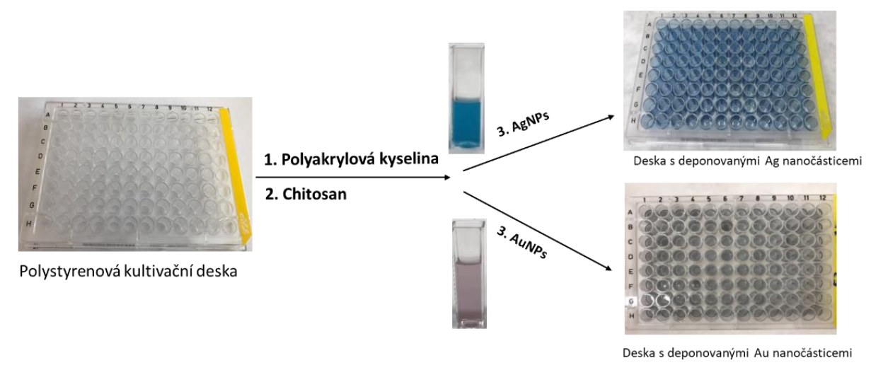 Obr. 1 Layer-by-layer depozice Ag/Au koloidů na povrch kultivačních destiček