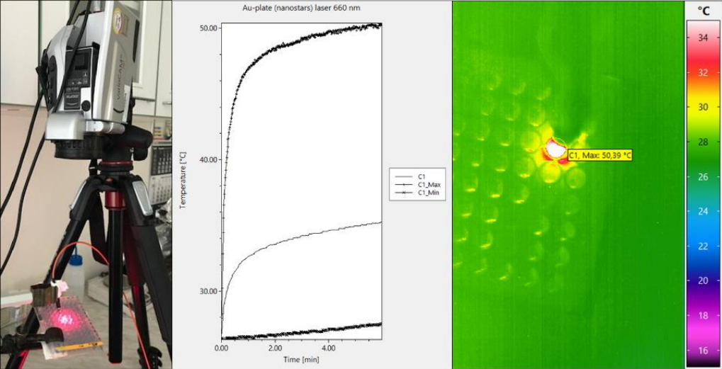 u AuNPs excitovaných 660 nm laserem. Studie potvrdila biokompatibilitu nanovrstev a zároveň
